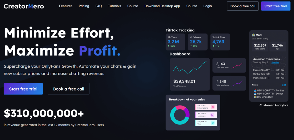 CreatorHero is a lively CRM platform made just for content creators. It gives them a bunch of strong tools to boost fan engagement and make management easier. It’s perfect for creators on sites like OnlyFans, as CreatorHero aims to help them talk more with subscribers and get useful info to grow their businesses.